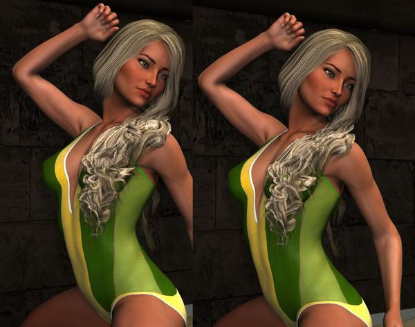 I love the action AND the lighting on the first one! Did you have to expand the parameter sliders to get the hair blowing like that?