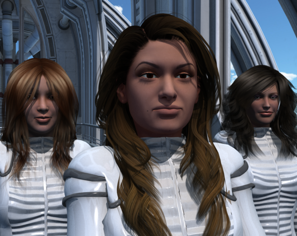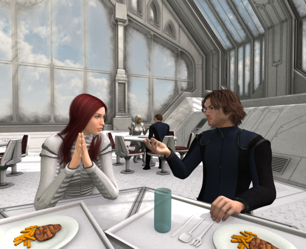 And I am interested in these kinds of critiques. One of my concerns is that different lighting can make the characters look very different from scene to scene, and I really want to have a consistent look. The only exception I've made to this is with the GIS sets, as the GIS Lights product I bought made the set pieces look so much better that I couldn't not use it. Here are some samples below. These shots each took an hour and a half to render, and I had to redo a number of them. And the full face shot of Cleo took four hours to render! And I just don't care for the way Max's face looks with these lights.