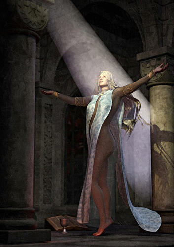 I decided to pick up a render I did over two years ago, when I've had DS for about 4-5 months and was still struggling with getting scenes to look good, but I was rendering away because I was working with an adventure and needed to pictures. My outdoor pictures looked good, but all my indoor ones looked like this. I had the same problems with both Poser and DS except that all my Poser renders looked like this, flat and ugly.