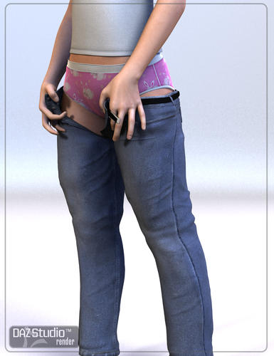 There are 90 morphs in this item to make it even more versatile. Morphs to create different styles, morphs to help with fitting shoes and shirts you haven't even bought yet! Plus a number of morphs to make the jeans look more realistic when sitting. Still not enough? How about three different sets of full body morphs to regular waist, low rise waist and hi-rise waist? Need more? How about morphs to open the JeanZ and make it look like your figure is dressing or undressing. Custom morphs were created for a number of the characters, (i.e. Victoria 5, Michael 5, etc.) so you don’t have to depend upon the auto morphs for good results.