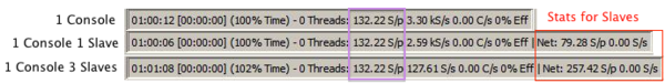 So the first test I ran was the Single machine no Slaves and the images is marked Single. The second I added one Slave to the once Console for a total of 6 CPU Cores and image is marked 1C&1S;. The third test was The Console and 3 Slaves for a total of 10 CPU Cores and it is marked 1c&3S;.