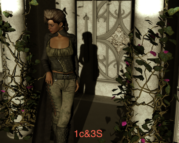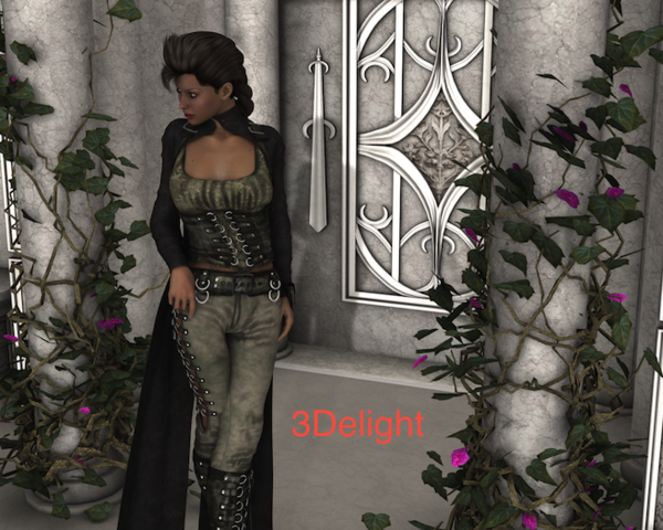 I had a scene threw together for another test so I pull it out. The set it The Alcove I think I just dropped in the pre-made set which came with lights. The Lady is Victoria 4.2, the Domino coat over Edens Flame Outfit, with Venom hair. Like I said I threw this together. And the render window is 1312x1049.