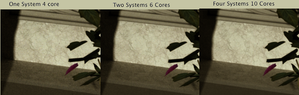 As you can see there doesn’t appear to be much of a difference, until you look at the back at the short step. I pulled these out a full Resolution and you can see the refinement that happened due to having more cores working on the render over a Set amount of time, in our case 1 Hr.