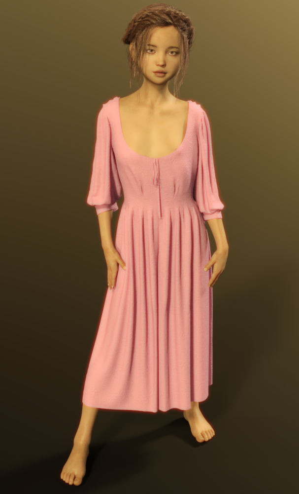 I should mention I added a pink metallic flake to the overdress, to "dress it up" for the render. (Do you remember "sparkle organza"? That's the effect I was trying for.) And as you pointed out, smoothing was turned off. The slip really needs smoothing turned back on. (Smoothing is not on for the overdress. I didn't even think about it. So I turned on and I'm rendering again, to see if it makes any appreciable difference. It's set to collide with the slip.)