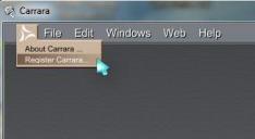I'm using a Mac. When you select the Register Carrara menu item you should get this: