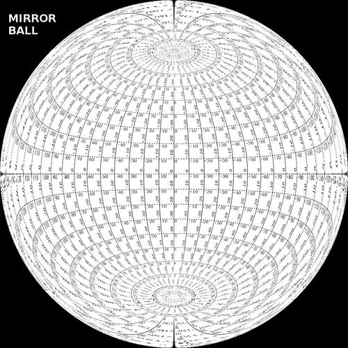 The main point about this mapping is that the azimuth scale across the centre of the circle is linear (unlike the mirrored ball).