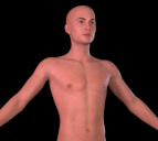 And then I tried to render him again, and there he was! Not translucent! very very pink -- considerably more pink, actually, but then, I suppose, compared to being a ghost, a solid character would look much more pink.