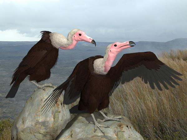 another vulture sneak preview... this one using the new King Vulture and the lesser Yellow-headed vulture, plus the American Black Vulture (from Vultures1). Also shown is the new carrion prop. The comes in different sizes and hides-- the default brown fur is shown but there's also zebra, elephant, giraffe, antelope, sheep and more.