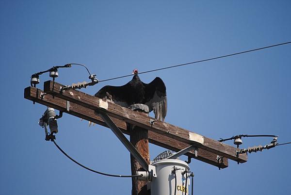 sort of on cue, I open the back door of my office on atop the utility pole was a Turkey Vulture.