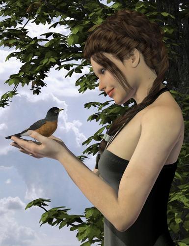 I'll show more vultures soon, but let me now share a preview of a couple renders from my "Bird in the Hand" pose set which pairs V4, M4, Genesis, V5 and M5 with a variety of Songbird Remix bird base models...