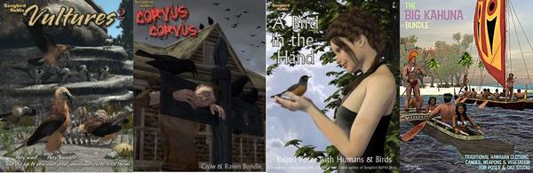Songbird Remix Vultures2, A Bird in the Hand (paired bird/human poses), Corvus corvus (Crow/Raven bundle) and the Big Kahuna Bundle are here for my annual Audubon's Birthday Charity Sale.