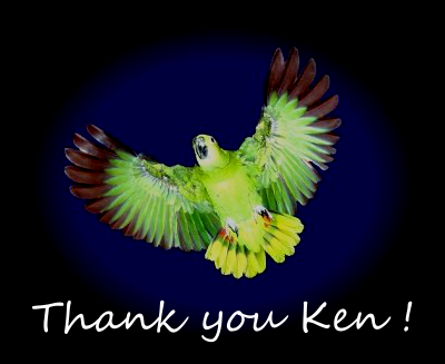 All my birds had free flight in my home (cockatoos, Amazons, Macaws, cockatiels, conures) and were potty trained :) People can't believe that, but its not that hard to do. My Yellow Nape Amazon Tripoli is below, as she sailed over me at the computer- her favorite game. She'd blow away all my papers with the wind from her wings, then land at the top of the computer hutch and laugh- MY LAUGH.
