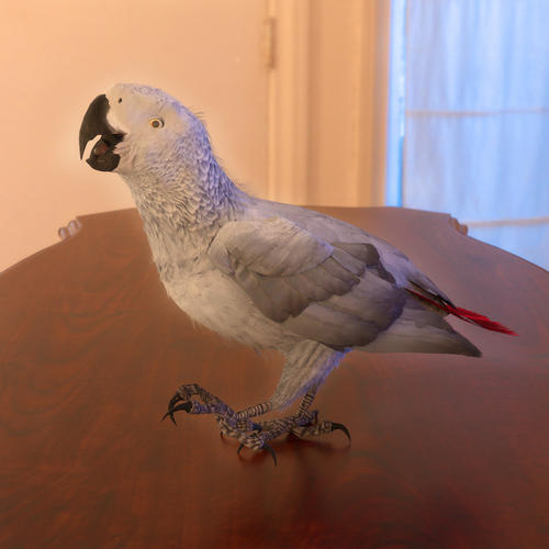 I have a friend with an African Grey who wanted a new avatar for his Facebook page, so I'm sure he'll be delighted with this...