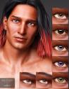 Giuseppe's textures come with 5 eye colors, 2 Sclera and Lash materials.  He has a chest tattoo, two arm tattoos and a calf tattoo with an option for them all to be used.  There are three brow options as well as a no brow option.