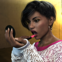 Laverne, getting her glam on. No postwork as lots of people will be reading the thread to make buying decisions about the character or the bundle containing her at the present time, but otherwise I might just have made a small liquify adjustment in Photoshop to the fleshy part of her hand beneath her thumb. I'm really liking Laverne and Monique, and love this hair. I can see it getting a lot of use.