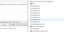 • I see 8 PostgreSQL Server entries under Processes.   Oops. Make that 9.  Attached image:  And I never personally meant to install anything other than where Windows 10 Pro (in this case) wanted the software installed.
