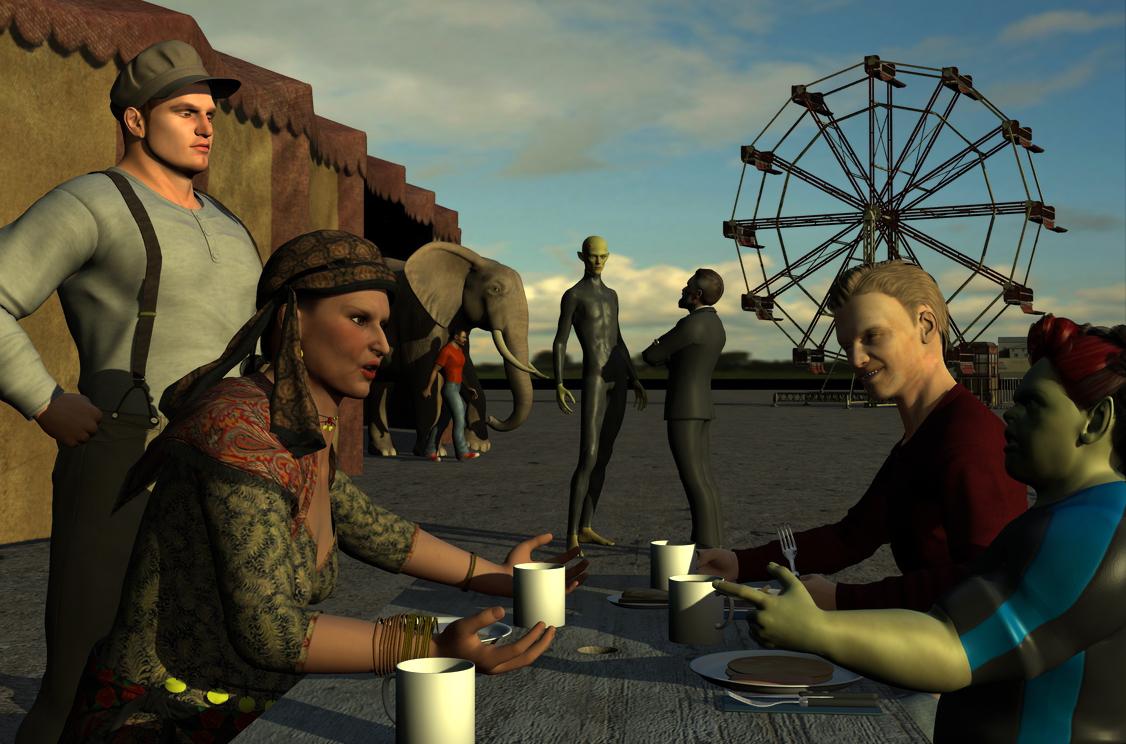 The first one is the first finished render I ever did, in 2011 using DS and 3Delight. The second one I rearranged the scene a year later and did some postwork. I am going to recreate it again hopefully and do an Iray render and some newer characters. These were all Genesis and a couple of Lorenzo LoRez.