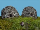 Find below the corset morphed and with placeholders for textures and replicated primitives for grass and stones.