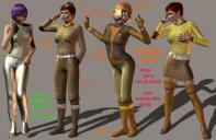 Some images from the moonbase and skydiver female uniforms.