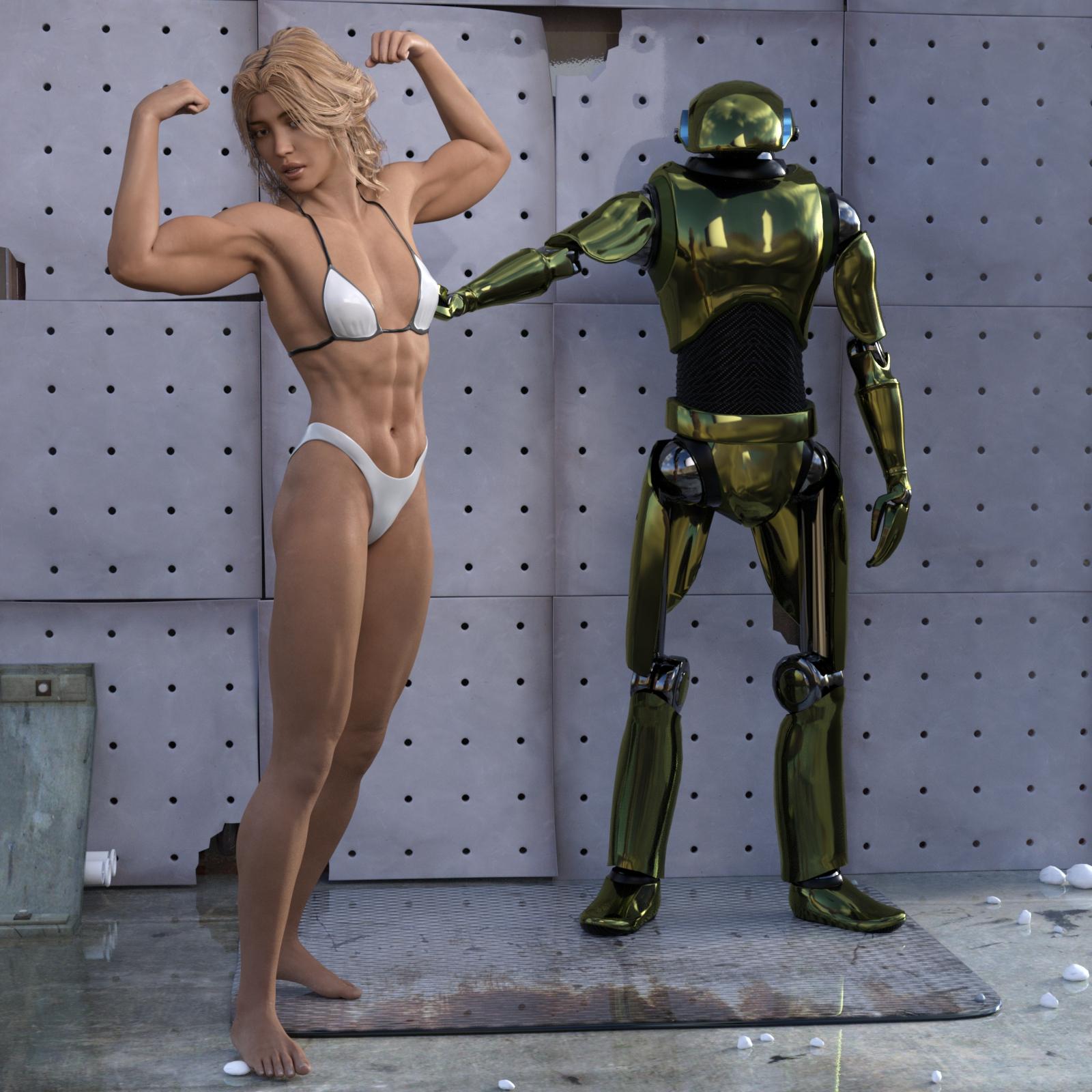 Look at those muscles wow she sure is strong enough to bend that robot outta shape giggles :D