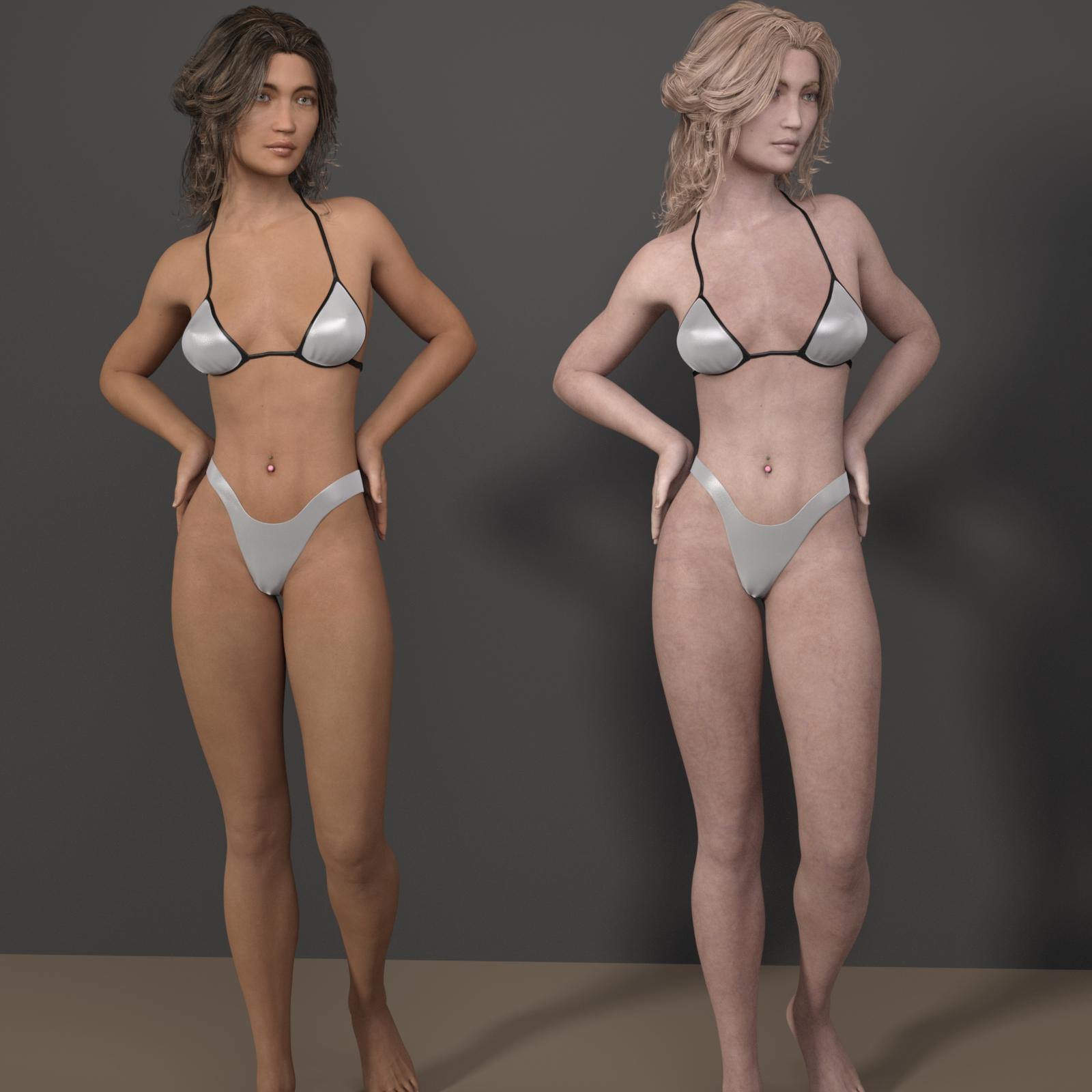 I used my G3F Subject B ( I think this is the first time I posted a render of her), G2F string Bikini-Top, G2F Laticis Imagery Panties, (both top and bottom used Xectra Satin shaders), test out the free fiber mesh eyebrows, unfortunately V7 already has Eyebrows, but it added some depth and color. and light choice was Second Choice SC lights, I think (wait let me check real quick) . . . . . . . . . yeah also used Dumor3D HDR Sets_ HDR light Background