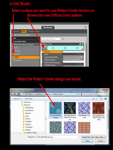 I have used Pattern Cooler to generate patterns that I use in the Diffuse Color channel of clothing. I use with The Fabricator to apply a weave to texture the garment. Pattern Cooler also has an option to embed a texture in the pattern that it generates, if you don't have The Fabricator, or just don't want to bother with it. One thing to be aware of with using The Fabricator or the embedded texture is that its appearance will be dependent on the tiling you choose for the pattern in the Surfaces tab. The Fabricator is designed for tiling of 10, I believe. Some weaves like Satin work well at all tiling, it seems. The Fabricator is available in the DAZ store here: http://www.daz3d.com/the-fabricator