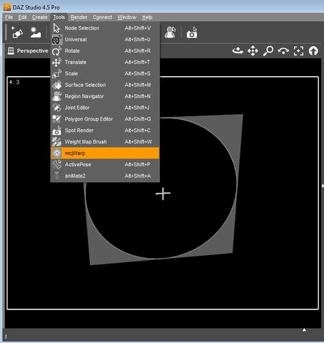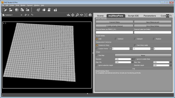 This shows the pre-release / Beta / Unfinished / mcjWarp plugin running on Daz Studio 4.5 64-bit