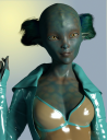 As with many specialty characters, the lighting is going to make a big difference regarding the appearance of the materials. (Particularly the specular sheen.)  Be sure and test quite a few if you get Omnix, because some made her look quite dull. Or change the skin surface by adding Metallicity, glossy, etc.)  This is out of the box. I think those materials are my favorite for an alien so far!   TIP: Got aliens?  Pro-Studio Light 7 Left.