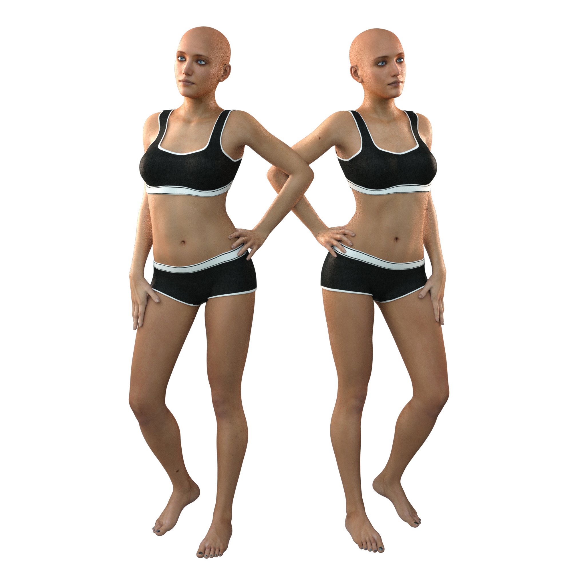 Her skin is very nice, but the morphs are barely there. She would look good using morph packs, but that's besides the point. When we're buying a character, we expect significant changes from the default base figure. That isn't the case here. (click and zoom in for more detail.)
