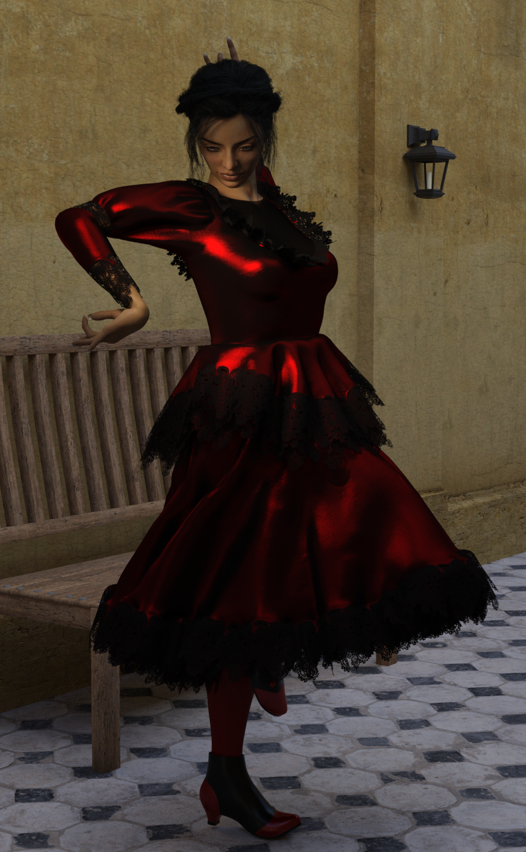 Really liking dForce Frolic dress by @AaveNainen and the Addon set by @Fisty and Darc. A cute dForce outfit for both G3 and G8 that works for the 19th c period and has a modesty insert for those of us who don't want our female characters to be falling out of their dresses. I couldn't find material presets for the corsage thing in the addon set, so I filed a ticket about it. Here's a test render with Vincenzina (please forgive the hovering heel)