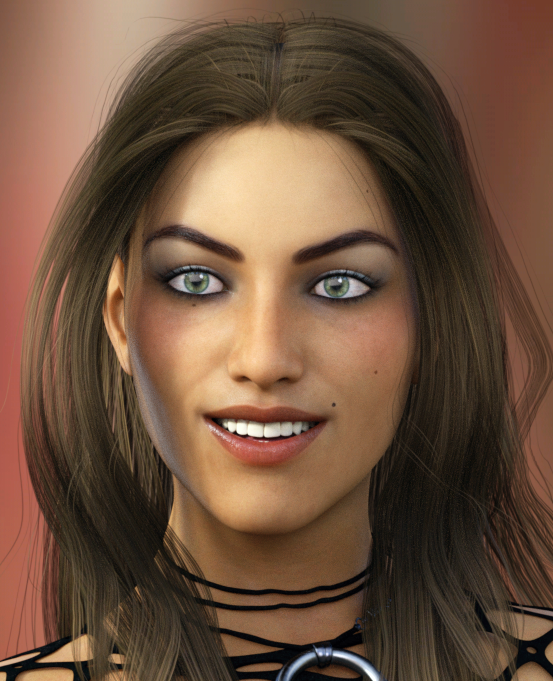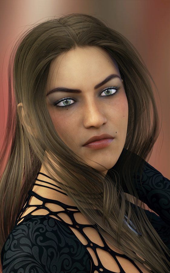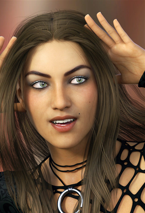Shown with the heavier makeup and with an attitude, but with the natural makeup, she's quite charming. The outfit is Goth Outfit (Gen8F) and the hair, which I haven't featured before, is Ktarya Hair (Gen3/8F). Did NOT use other shaders, this is out of the box and quite lovely. A LOT OF MORPHS.