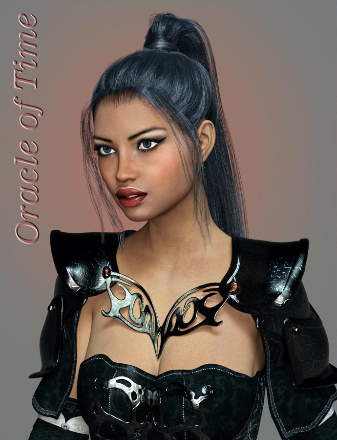 The Oracle of Time comes with a headpiece which circles the forehead, it isn't shown due to the Dimi Hair bangs. This hair has some nice features, but the main one I wanted is missing. (Unless I missed it, but I delved into Scene, etc) I didn't see a way to adjust the top of the hair/width of the entire upper half, so I couldn't slim down the width of the entire upper half of the hair. Reminds me of a bowl-cut look. (Which you may actually like.)