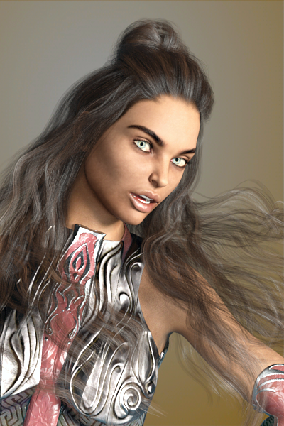 Hmmm love the blowing effects of Ulani Hair, but that transparency is a bit too much (our left) It's almost transparent on the blowing strands. Yep, that's hair blowing across her chest, look closely. Again, this is out of the box.