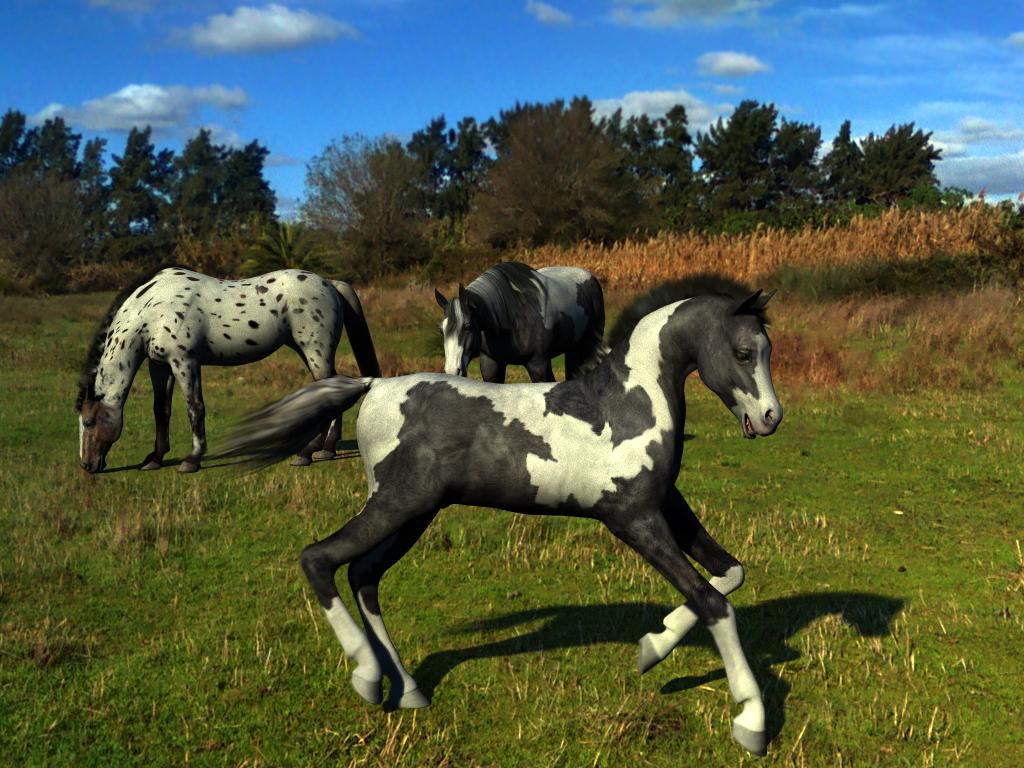 Sorry if this feels like rubbing it in for those with problems, but I just happened to do a render earlier that uses the IDG Iray Essentials for DAZ Horse 2 - I do have the Horse Pro Bundle so no problem with textures. I did this to try out the DAZ Foal set which I bought during MM. Background is from one of the HDRI products (sorry I can't actually remember which).