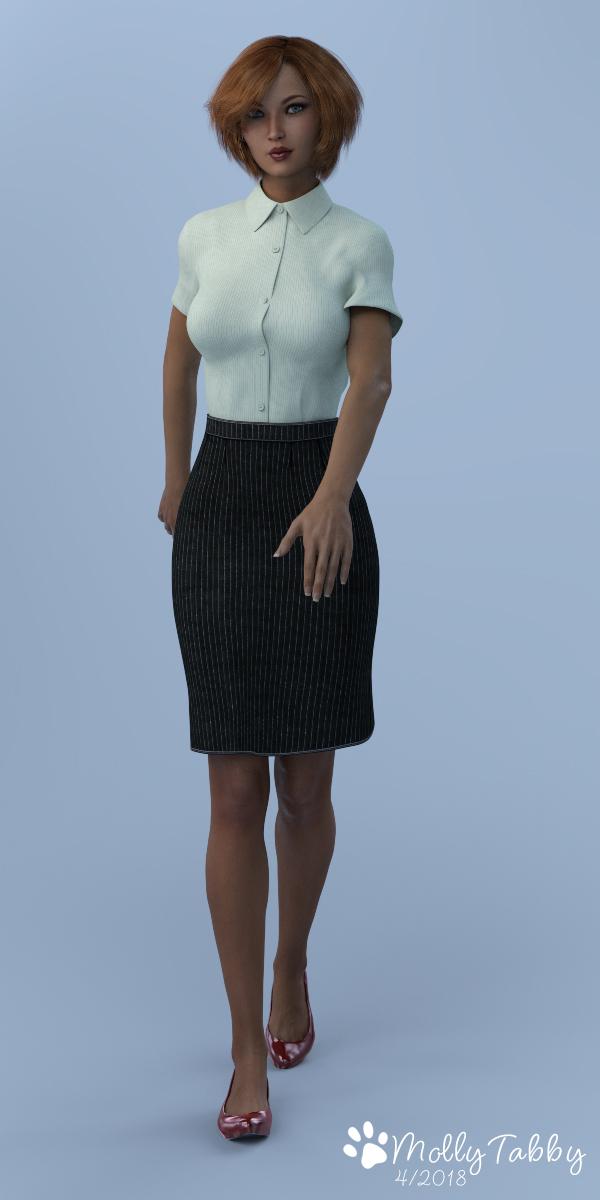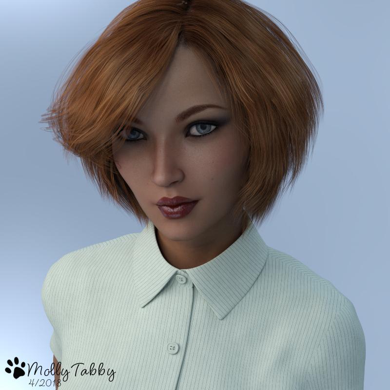 Number six on my G3F list is FW Art Brooke. I've paired her with Pixie Bob Hair and Office Wear for Genesis 3. I changed the blouse using shaders, but otherwise everything else is standard. I think the hairstyle makes her look a little severe. Her promo images are with long hair and she has a much softer look.