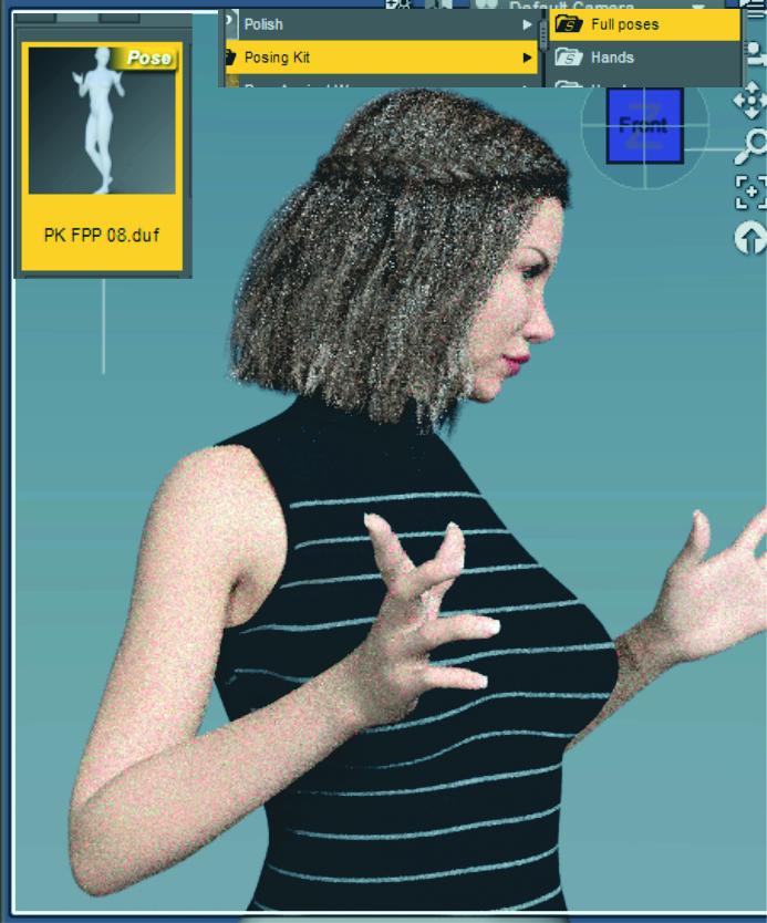 When vendors do posing products, it would be nice if they would load as shown in the thumbnails, and they need to be facing FRONT if it's a front pose.This figure sharply turns away from the front and that doesn't even make sense. To match the thumb the camera had to be Y Rotated to -70.75, not a small detail!