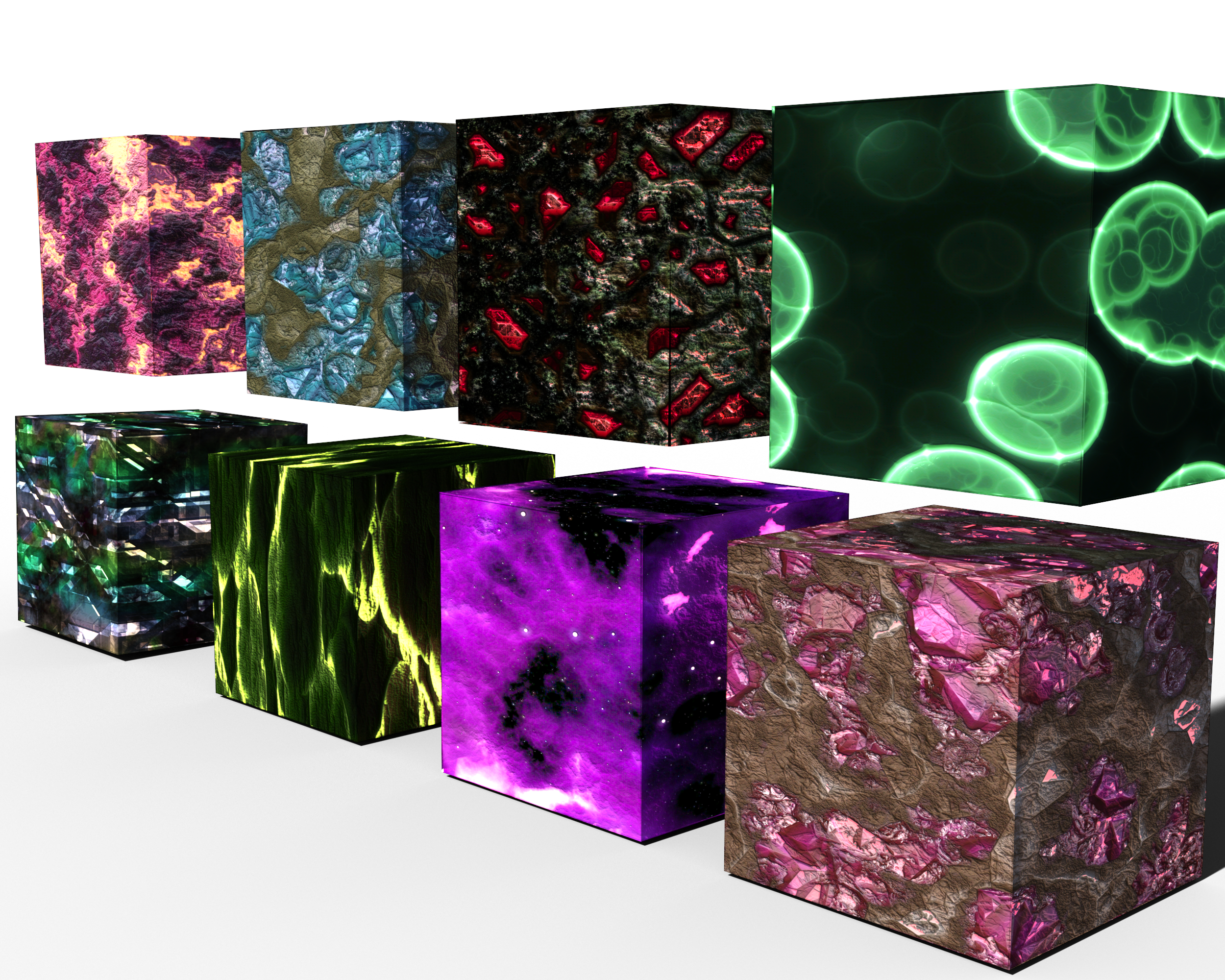 Straight out of the box not tiling or anything.  This is not all of them either but a fair sampling.  Fun to play with and will make really good special effects, planets, etc etc.  by JG so really well done as well.