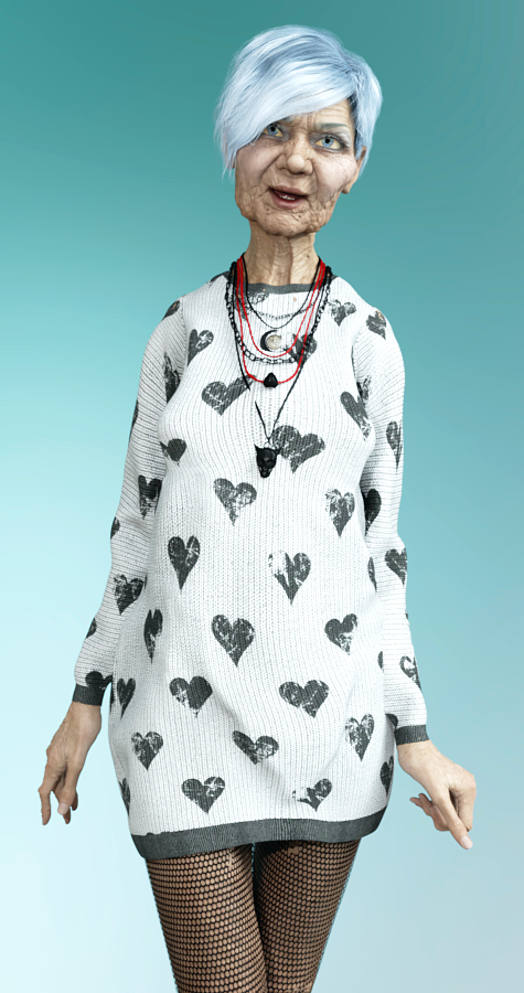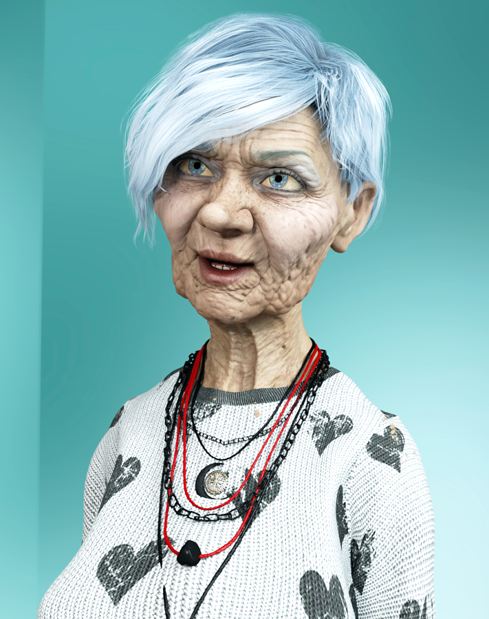 I love the Etta character, I bought her today. The nose in the render above though would drop a bit though, sort of giving the impression of a hook nose in a person that old. The cartilage in the nose & ears continues to grow one's entire life.