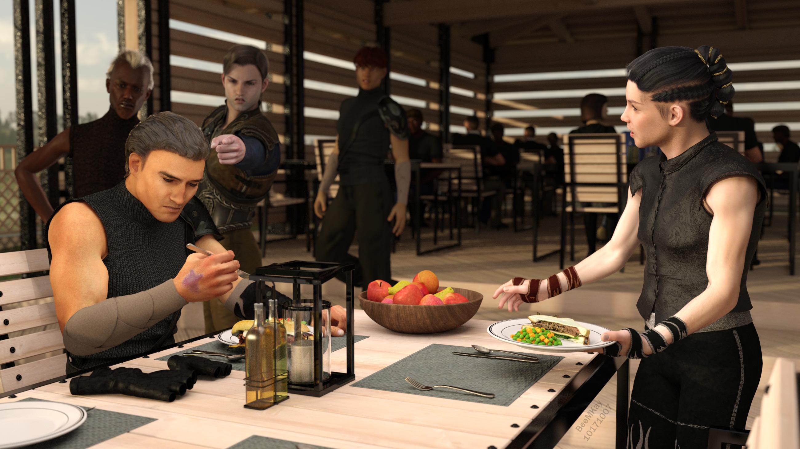 I'Ve used them here in the background to populate the restaurant, in combination with instancing. As you can see from the non-Depth of Field version, the repeated instances are pretty obvious: