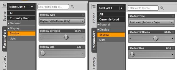 Greetings; I'm trying to use UberEnvironment. Right now I have the light set from the "Enchanted Terrace" in a scene (it has 5 Distant Lights, 1 Spotlight, and 1 UberEnvironment2); I'm using it as initially set, which had the Distant Light 1 and Spotlight with shadows on; however I changed them to Raytraced Shadows and Shadow Bias 0.1.