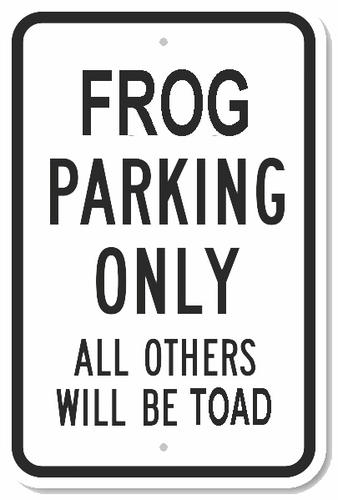 Both are amphibians. Why can't they all get along? (made the parking sign)