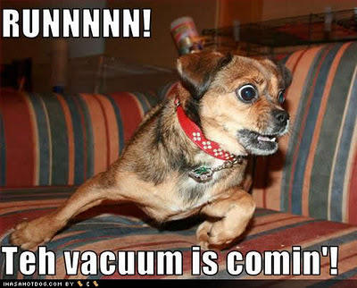 Our dog and cats do the 100 yard dash to run away from the vacuum.