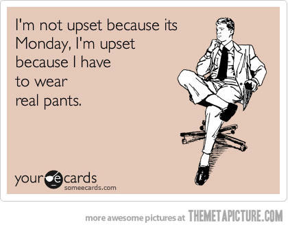 ...that is one of the reasons I dread having to go back to work. I like my cargo slacks & jeans. To have to wear a suit & tie, yuk