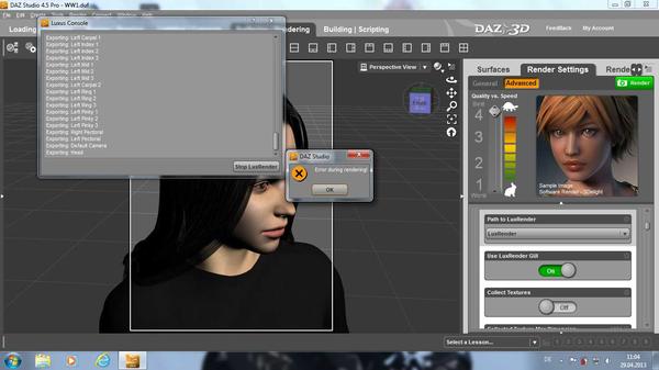 whenever I try to render a picture with a character using Dragon Princess Hair (http://www.daz3d.com/hair/long/dragon-princess) the render did stop during data export (see screenshot). It doesn't matter if I use 3dlight or LuxRender. If I remove the Hair the render works normal.