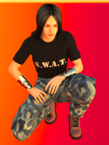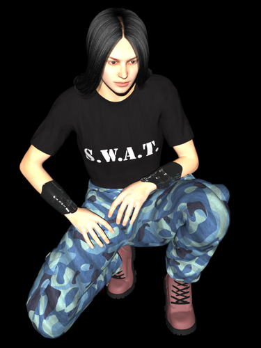 it's Genesis with Azumi Texture, Dragon Princess Hair Lava, Military TShirt SWAT, Military Pants UrbBlue Small Pattern, Boots Red