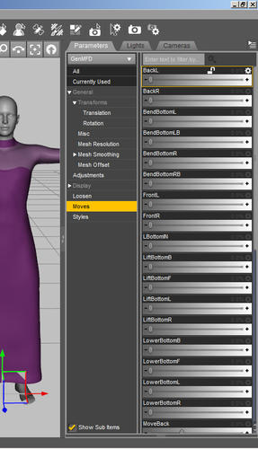 I was referring mostly to shaping morphs. Also, the movement morphs don't really accommodate anything more than very subtle movements, since the dress doesn't follow Genesis from the waist down, so you have to try and match the Genesis pose by copying limb rotations into the MFD. Another issue is that many of the movement morphs don't curl the dress, but stretch it flat along the ground which can make it look a bit awkward.