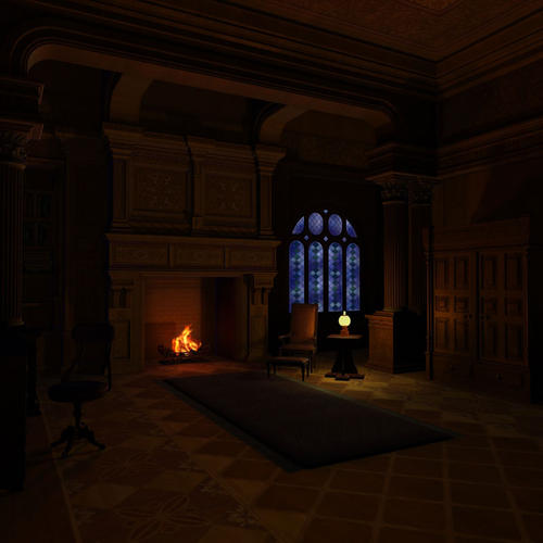 UberEnvironment is set to a blue for moonlight. Fireplace US color of light is set to fire diffuse map with 2 lp lights, smaller is brighter and orange, larger is red. Window glass light is set to glass diffuse with I forget opacity. Oil Lamp is dusky pale yellow. The only ambient in the scene is applied to the US surfaces. The out-of-the-box render for the scene is at link above.