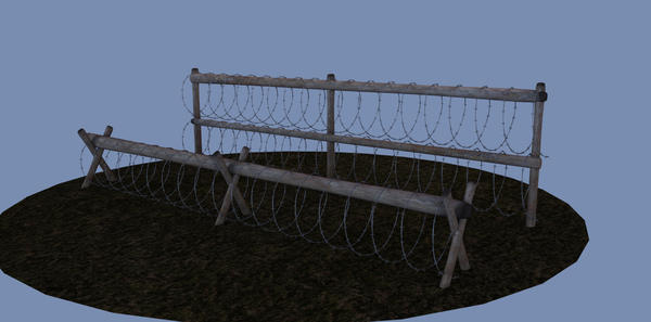 I know I have several barbed wires, the best was from Rendo (a set called Vogel Einz!) Lowres German soldiers. I think there is some also at onTarget3D in the set called Trenches, but I can probably make some if you ask nicely, I now how I can make it simple ;-)