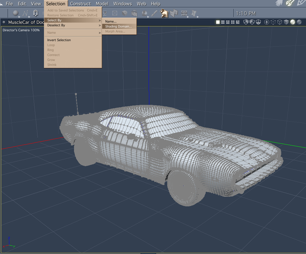 Yet another option that works great for Poser/Daz style rigged models is to select the model, then select the either the wrench icon on the left top window (to edit in the assembly room) or the large wrench icon on the top screen to enter the actual modeling room. Once the mesh of the bike loads you can use the Selection Menu--> Select By--> Shading Domain. A little window will open with a list of shading domains. Select the one you want. Depending on the density of the mesh, Carrara may have to think a little. Once the part is highlighted, go to the View Menu--> Hide Selection. The advantage of doing this is that sometimes alphas don't play nice with volumetric clouds or other post-render effects such as Aura. This will only work on Poser/DAZ style rigged figures. Anything else will show in the Assembly Room.
