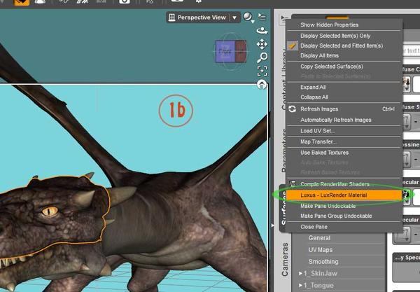 1a: with the surface selected (surface selection tool, surface tab circled) click on the 'menu' box in the upper corner of the surface tab.